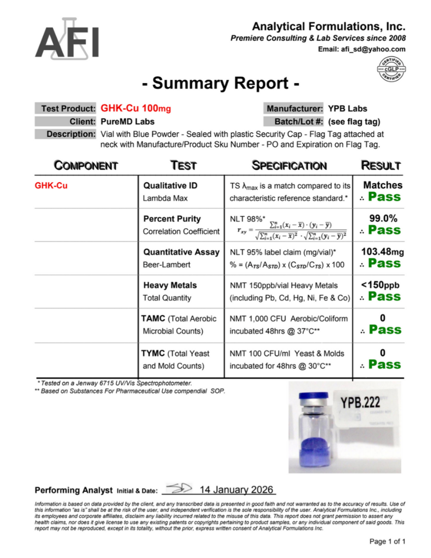 Every batch undergoes rigorous third-party laboratory testing to verify identity, purity (≥98%), and quality before release.