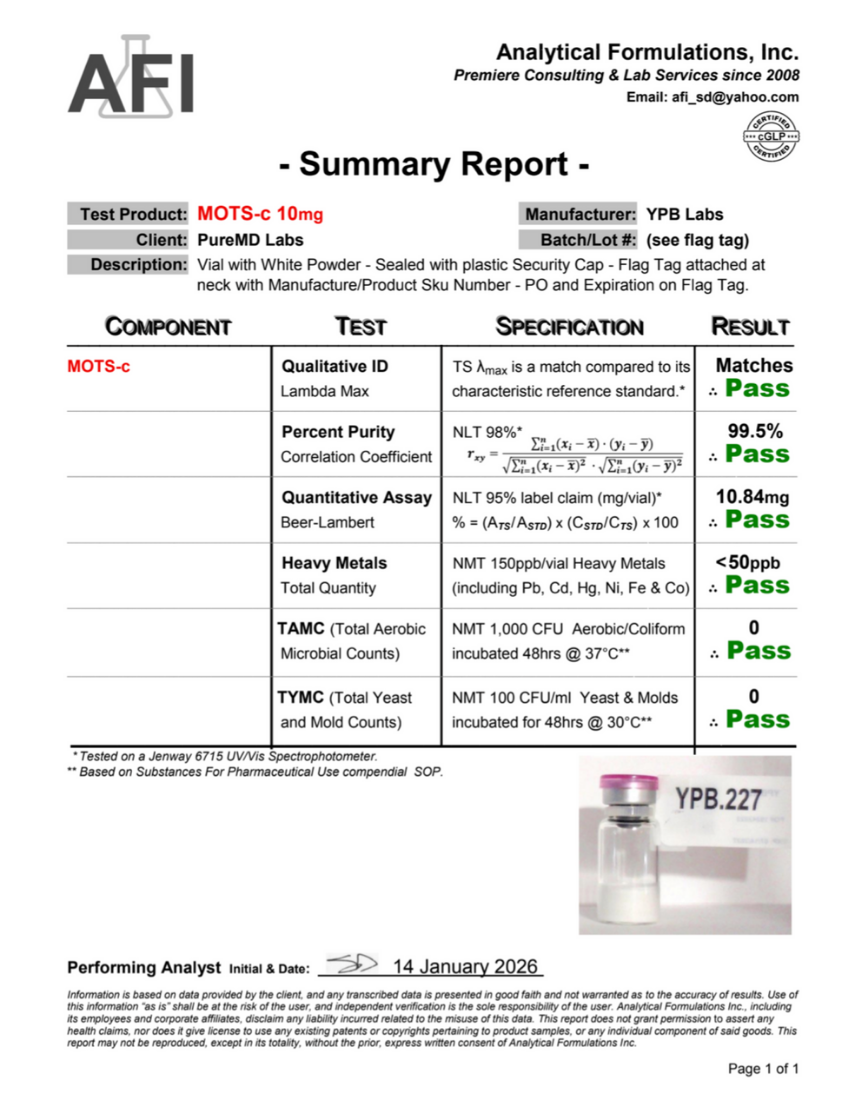 Every batch undergoes rigorous third-party laboratory testing to verify identity, purity (≥98%), and quality before release.