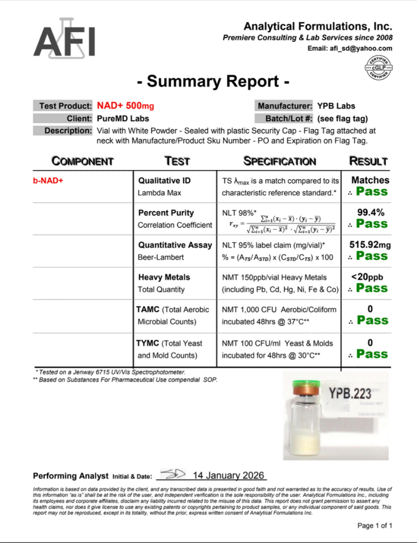 Every batch undergoes rigorous third-party laboratory testing to verify identity, purity (≥98%), and quality before release.